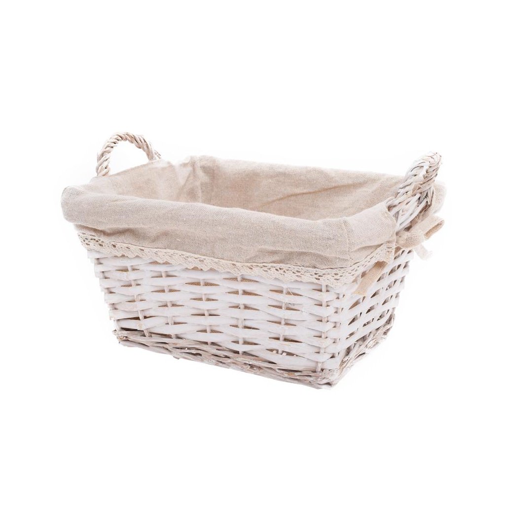 PRÚT. KOŠÍK OBDĹŽNIK BIELY S RÚČKOU BIELA LÁTKA 28x23x15CM