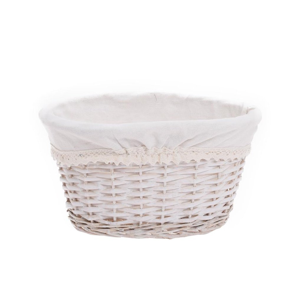 Cena za 1 ks: 3.8, PRÚT. KOŠÍK OVÁL BIELY BIELA LÁTKA 29x23x15CMDodatočné parametre