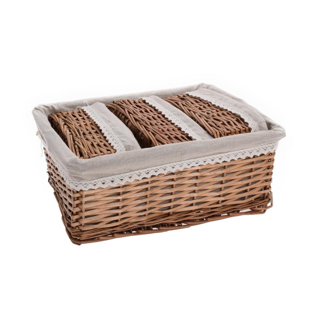 PRÚT. KOŠÍK S/2 OBDĹŽNIK SV.HNEDÝ BIELA LÁTKA 40x30x16CM + 24x16x11CM