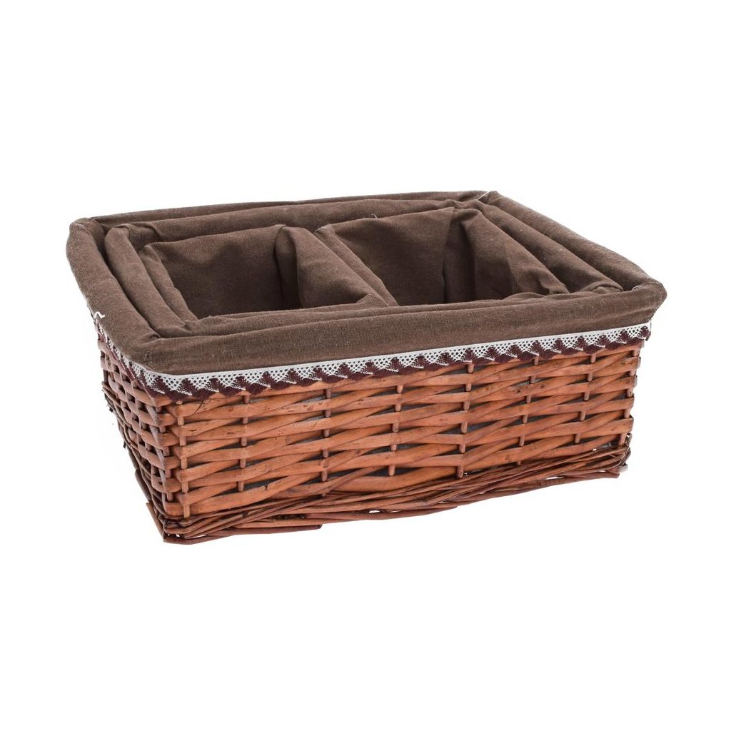PRÚT. KOŠÍK S/3 OBDĹŽNIK TM.HNEDÝ TM.HNEDÁ LÁTKA 40x30x16CM + 34x24x14CM + 18x14x12CM