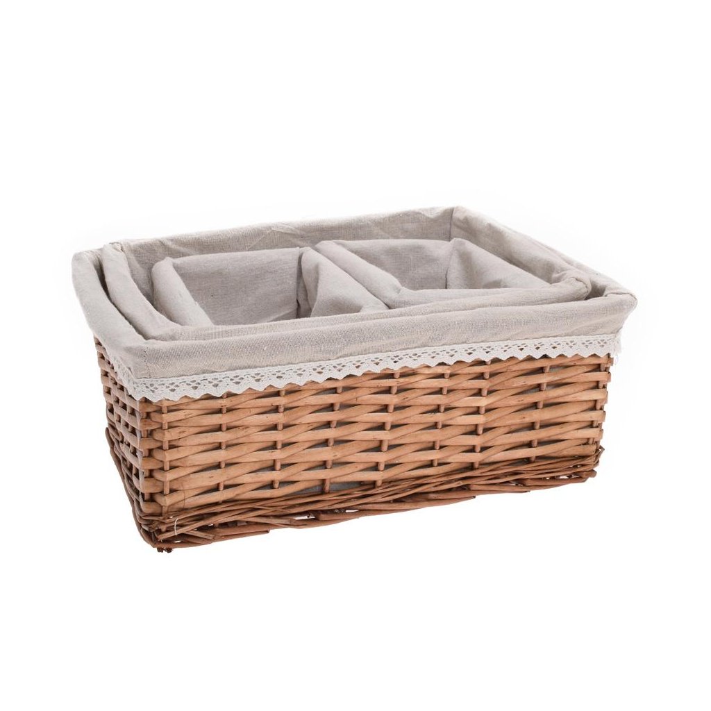 PRÚT. KOŠÍK S/3 OBDĹŽNIK HNEDÝ BIELA LÁTKA 40x30x16CM + 34x24x14CM + 18x14x12CM