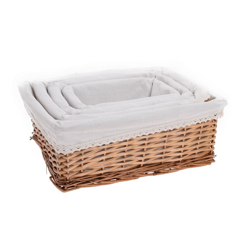 PRÚT. KOŠÍK S/4 OBDĹŽNIK SV.HNEDÝ BIELA LÁTKA 40x30x16CM + 23x15x10CM + 34x24x14CM + 28x18x12CM