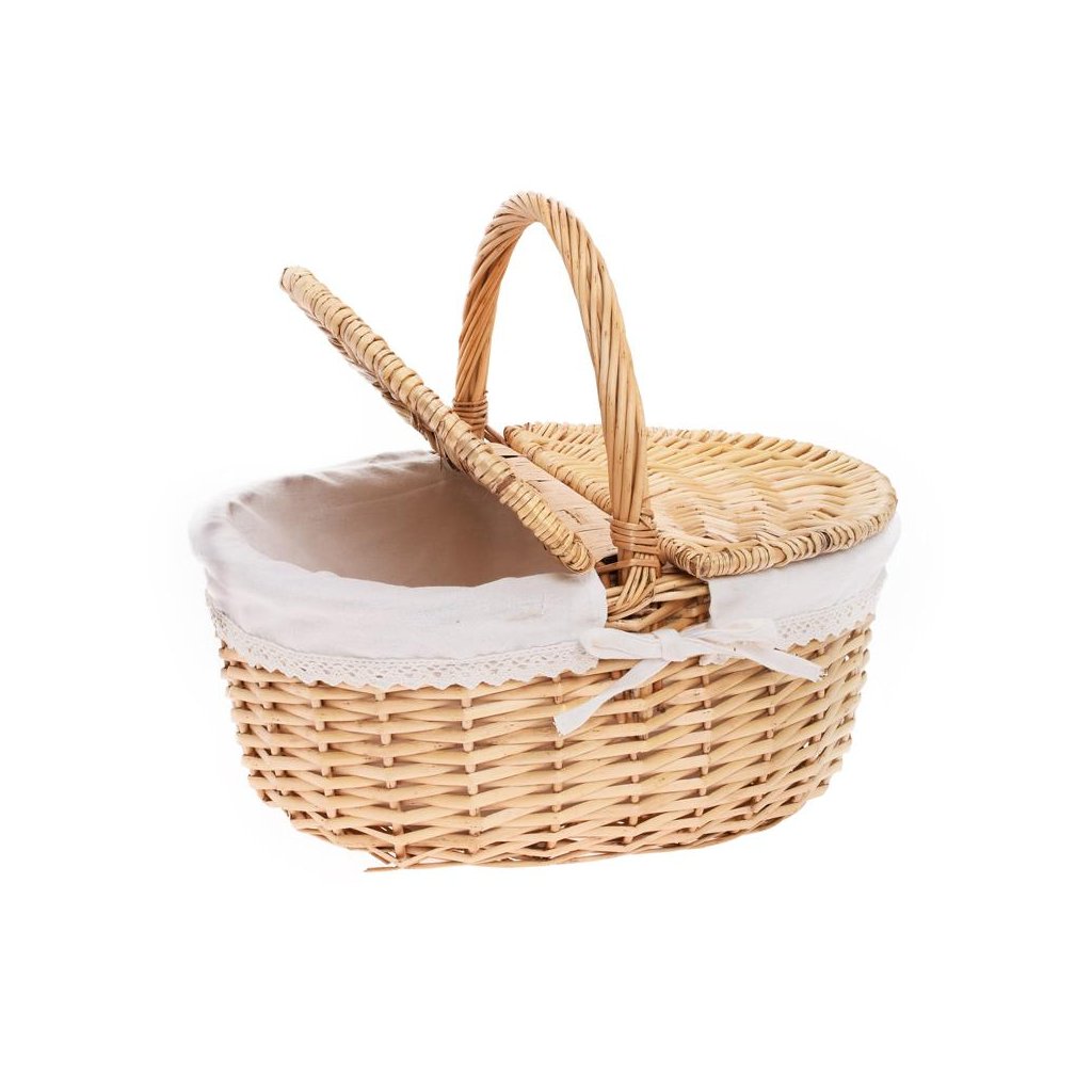 Cena za 1 ks: 16.67, PRÚT. PIKNIKOVÝ KOŠÍK OVÁL SV. HNEDÁ S RÚČKOU BIELA LÁTKA 38x28x17x36CMDodatočné parametre