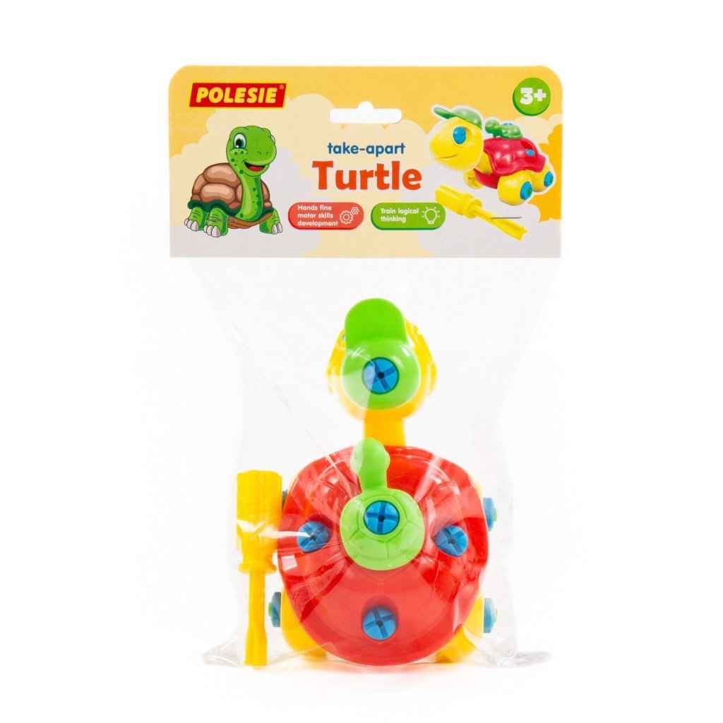 S pomocou stavebnice Korytnačka sa dieťa nielen zoznámi so svetom zvierat, ale môže hračku opakovane skladať a rozoberať podľa prvkov. Na tento účel je súčasťou sady aj špeciálny skrutkovač. Hračka je na kolieskach, takže sa s ňou môžete hrať ako s autom. Táto stavebnica je ideálna na výchovu bábätka dieťa sa učí farby a tvary, rozvíja vytrvalosť, logické myslenie, jemnú motoriku rúk a koordináciu pohybov.Dodatočné parametre