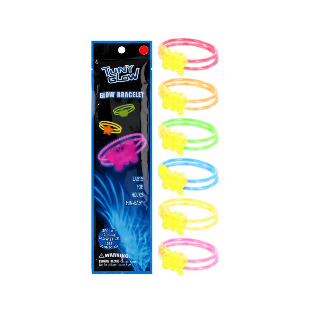 Sada svietiacich náramkov Motýľ, dodáva sa v šiestich farbách červená, žltá, oranžová, zelená, broskyňová, modrá. Cena je za 2 kusy v balení. Náramok má rozmer 20cm. Výrobok je určený pre deti vo veku 3+.Dodatočné parametre