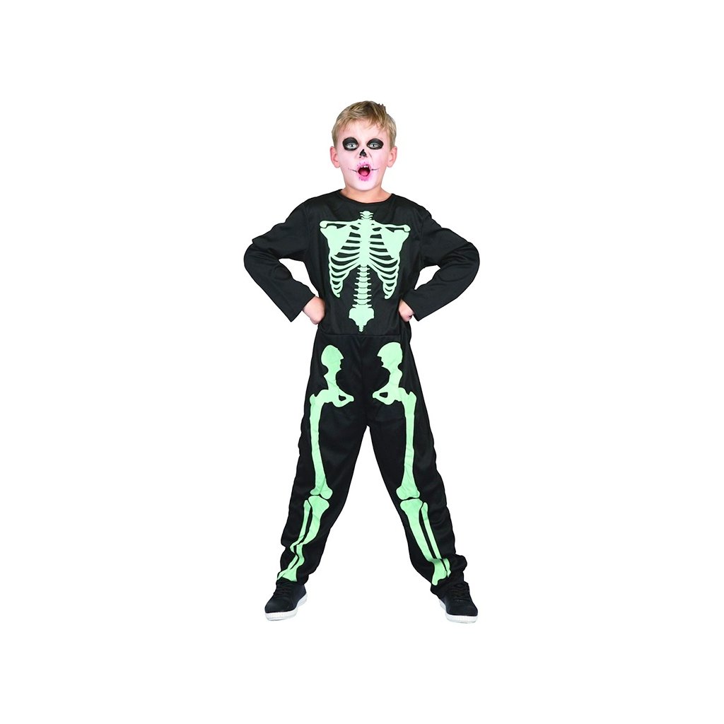 Šaty na karneval - kostra svietiaca v tme, 110 - 120 cm. Kostým je vhodný pre chlapcov vo veku 4-6 rokov. Balenie obsahuje: -Kombinézu s prvkami svietiacimi v tmeDodatočné parametre