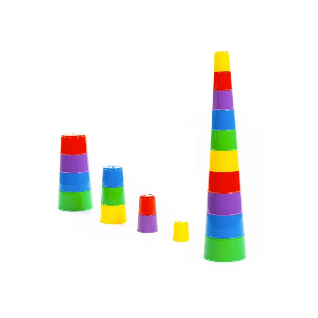 Pyramída č.1, 42 cm vysoká, pozostáva z 10 ks farebných pohárikov vo výbornej kvalite a prevedení. Podporuje u detí rozvoj jemnej motoriky, rozoznávanie farieb a tvarov.Dodatočné parametre