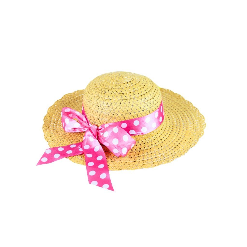 Krásny slamený klobúk pre malé parádnice. Je skvelým doplnkom na letné dni, vystúpenia, karneval alebo tematické párty. Tento parádny kúsok má ružovú stužku s bielymi bodkami. Obvod klobúka je cca 53 cm.Dodatočné parametre