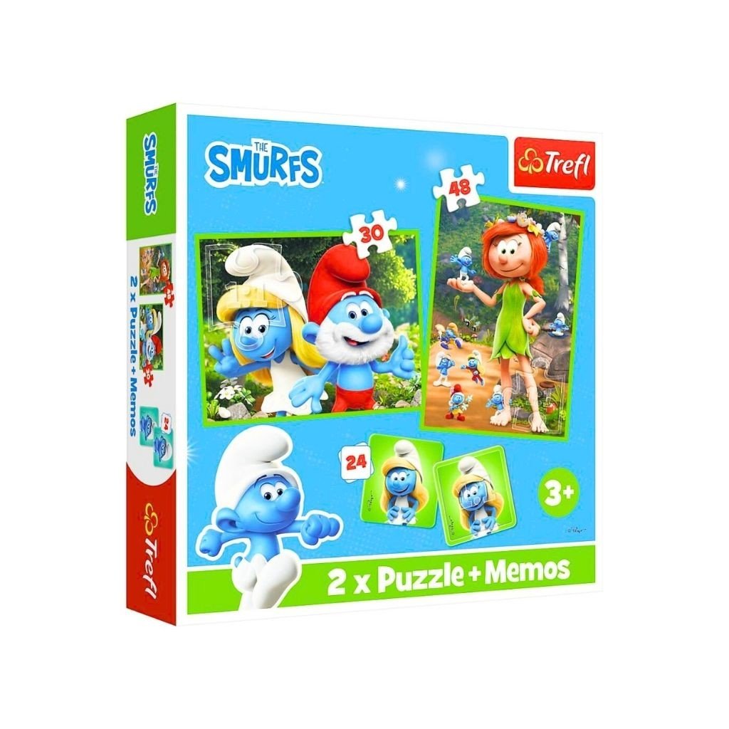 Puzzle a pexeso v jednom s motívmi veselých Šmolkov pre deti. Sada obsahuje 1x 30 dielikove puzzle a 1x 48 dielikove puzzle ktoré vytvoria farebne obrázky, a pexeso pre trénovanie pamäti. Každý dielik je ľahko skladateľný a vhodný pre malé deti, ktoré sa učia tvary a farby.Dodatočné parametre