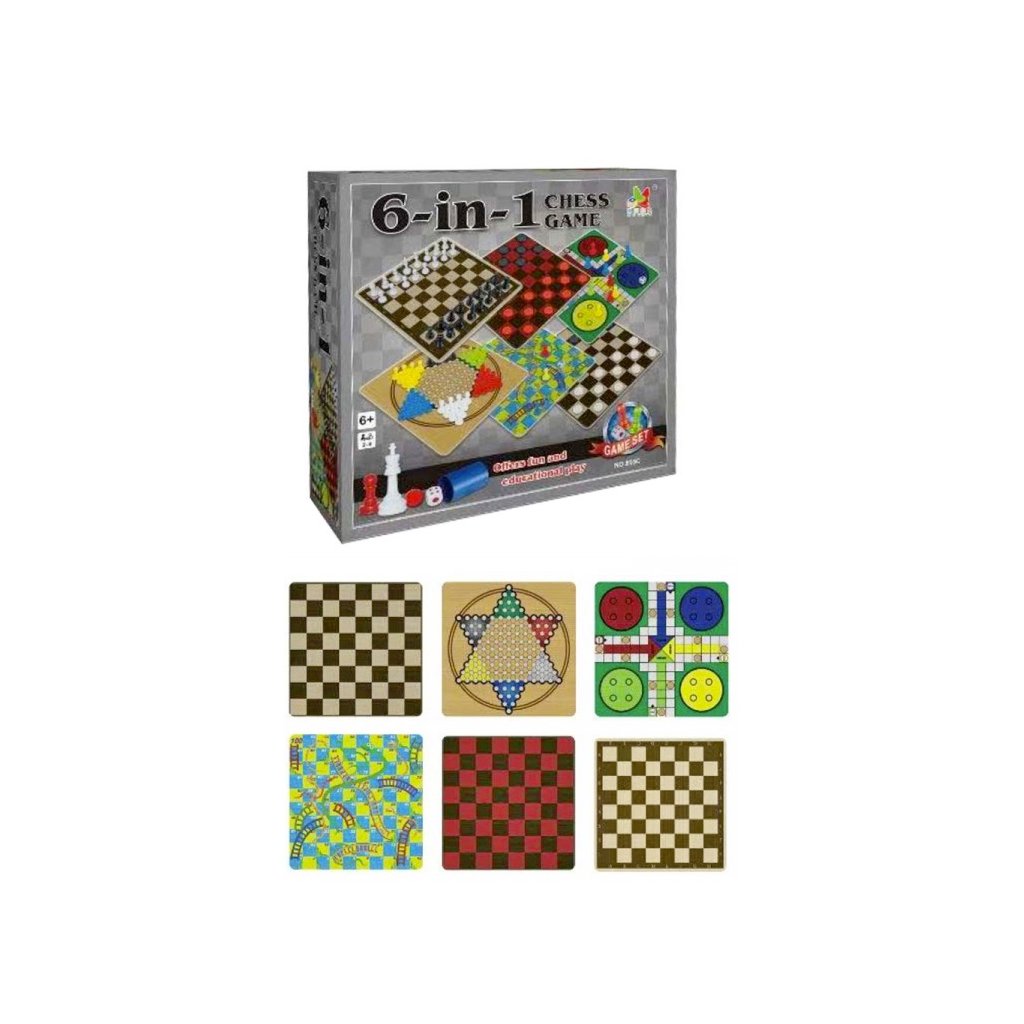 Spoločenská hra 6v1. Hra obsahuje človeče nehnevaj sa, hadíky a rebríky, šach, dámu, čínsku dámu. Pre 2 až 4 hráčov. Nevhodné pre deti do 3 rokov. Odporúčaný vek od 6 rokov. Rozmer hracej plochy - 26,5cm x 26,5cmDodatočné parametre
