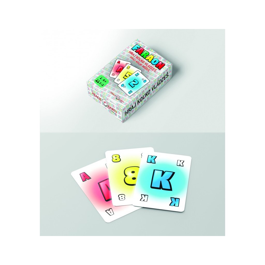 Spoločenská hra Faraon, zbavte sa ako prvý všetkých svojich kariet a získajte body za karty, ktoré ostatným hráčom zostali v rukách. Rozmer krabičky je 60x90x20 mm.Dodatočné parametre