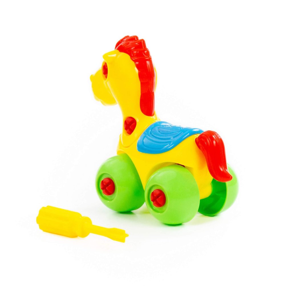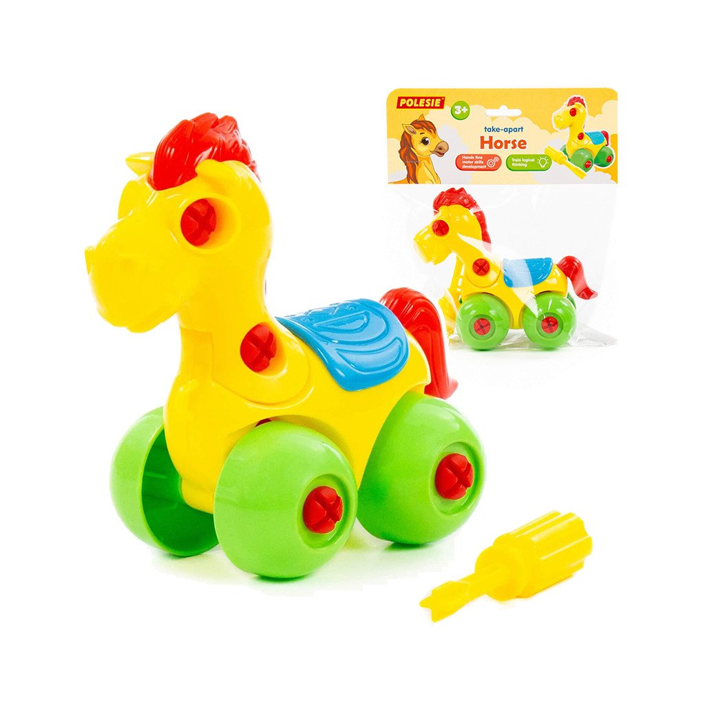 Šróbovací koník, je hračka pre malých technikov, ktorí radi skladajú a objavujú. Deti si ju môžu rozobrať a znovu poskladať pomocou priloženého náradia. Má rozmery 190х82х205 mm. Cena je za kus. Vhodné pre deti vo veku 3+ rokov.Dodatočné parametre