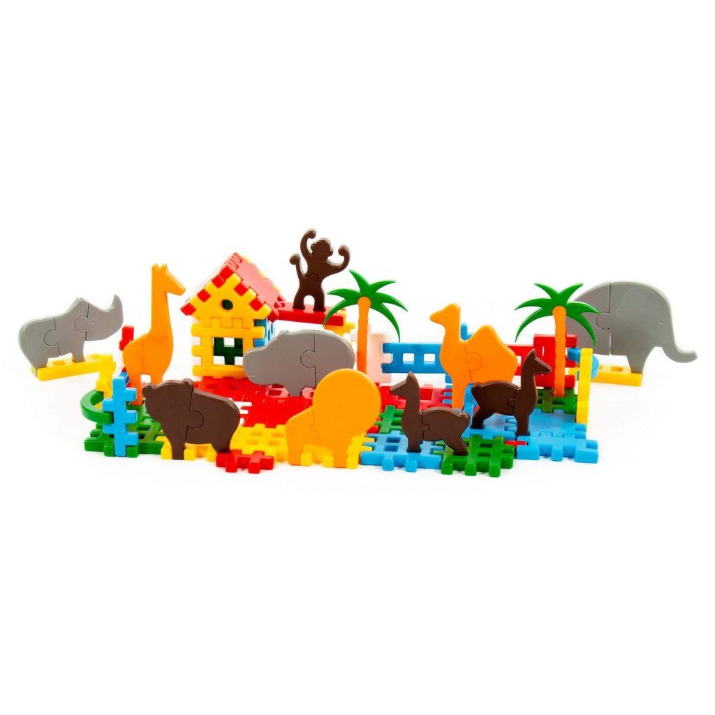 Detská stavebnica Blok Zoo obsahuje 117 dielov, z ktorých si deti môžu postaviť vlastnú zoologickú záhradu plnú zvieratiek a rôznych scén, farebné dieliky sa ľahko skladajú a rozkladajú, čím podporujú rozvoj jemnej motoriky, logického myslenia a kreativity, hračka je vyrobená z kvalitného a odolného plastu vhodného na každodenné hranie doma aj v kolektíve.Dodatočné parametre