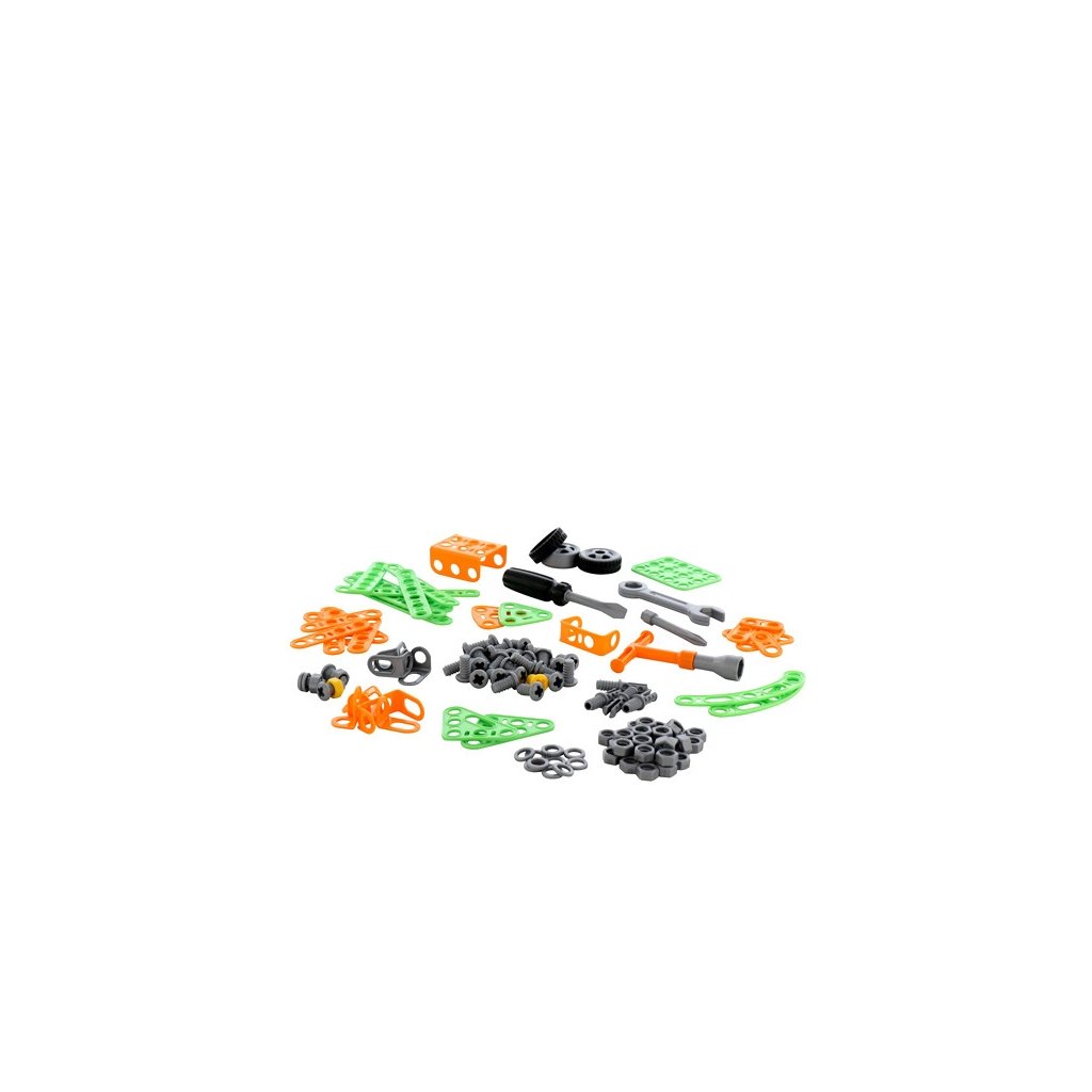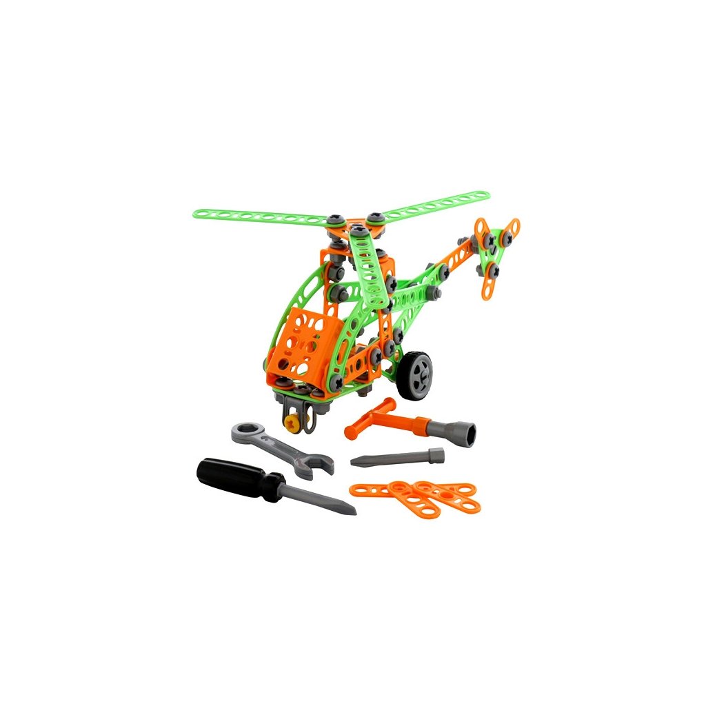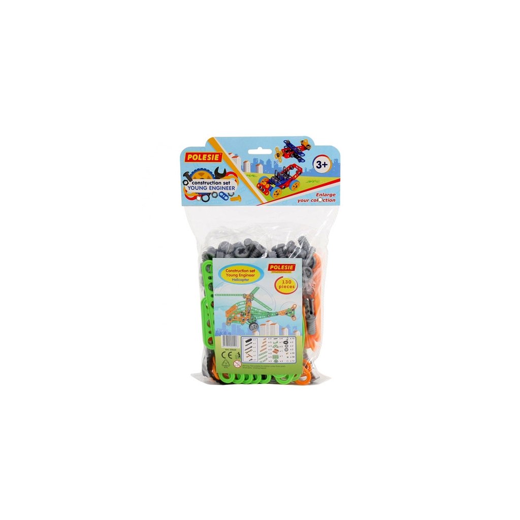 Stavebnica Malý Inžinier 130 Vrtuľník. V balení je 130 častí na poskladanie vrtuľníka, ale aj iného kreatívneho modelu na kolieskach s gumovou pneumatikou s priemerom 5,5 cm. Jednotlivé časti sa spájajú skrutkami a maticami priloženým náradím. Hračka podporuje rozvoj jemnej motoriky, rozvoj základných technických zručností a návykov.Dodatočné parametre