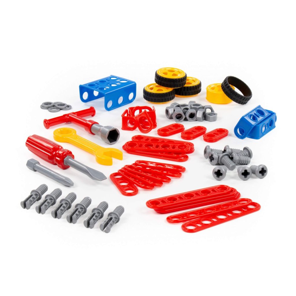 Stavebnica Malý Inžinier 87. V balení je 87 častí na poskladanie štvorkolky, ale aj iného kreatívneho modelu na kolieskach s gumovou pneumatikou s priemerom 5,5 cm. Jednotlivé časti sa spájajú skrutkami a maticami priloženým náradím. Hračka podporuje rozvoj jemnej motoriky, rozvoj základných technických zručností a návykov.Dodatočné parametre