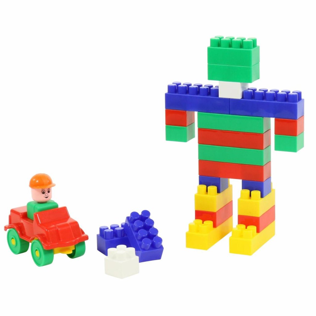 Stavebnica v praktickom kontajneri 52 dielna s rozmerom základného dielu 3 x 3cm. V balení sú stavebné kocky, strecha na domček a doplnky ako strom a dopravné značky.Dodatočné parametre