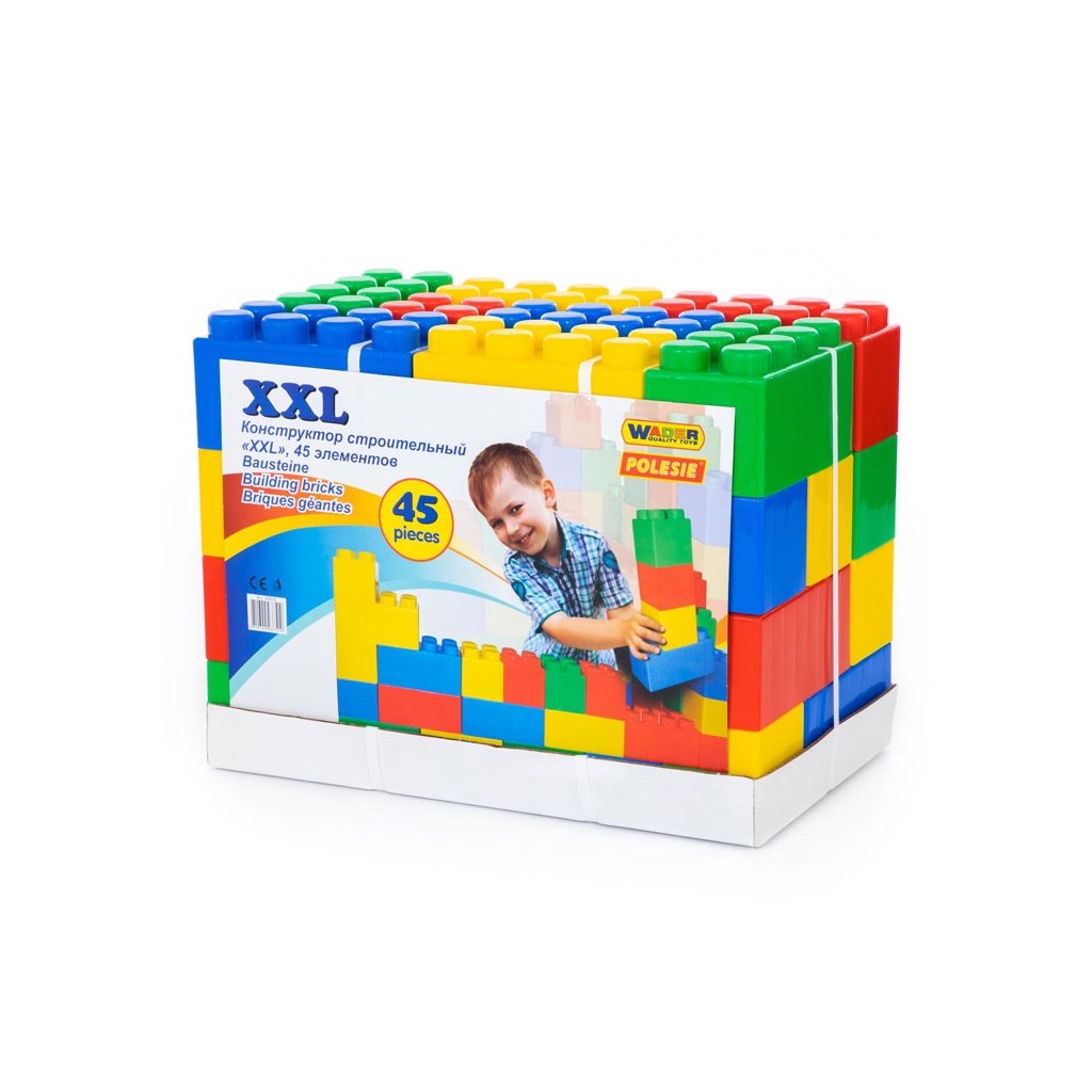 Wader stavebnica XXL 45 dielov, farebné časti s rozmermi 21,5 x 10,5 x 12 cm. Hračka je certifikovaná pre deti od 1 roku veku, vyrobená od renomovanej značky Wader quality toys.Dodatočné parametre