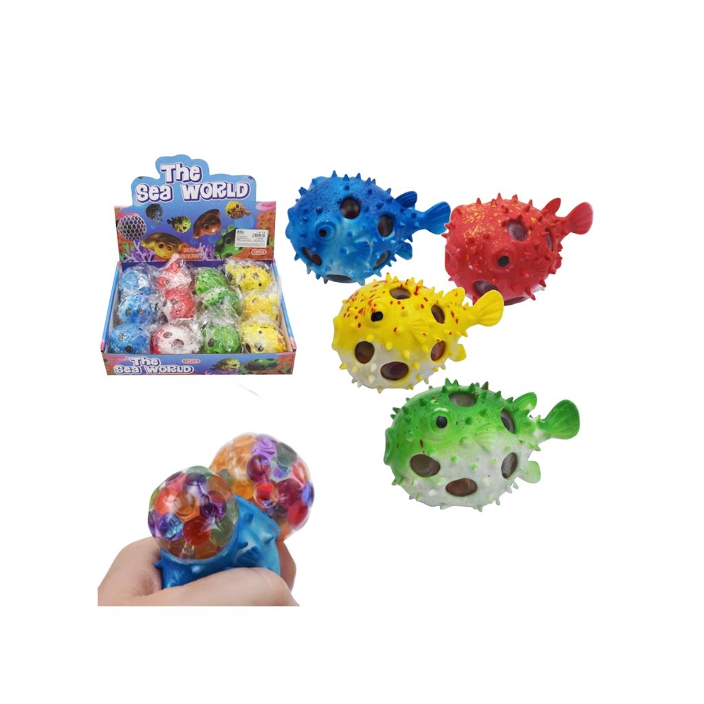 Antistresová 8cm stláčacia morská ryba. Po stlačení sa z otvorov vytlačia guličky. Možnosť výberu zo štyroch farieb - modrá, červená, zelená alebo žltá. Nevhodné pre deti do 3 rokov.Dodatočné parametre