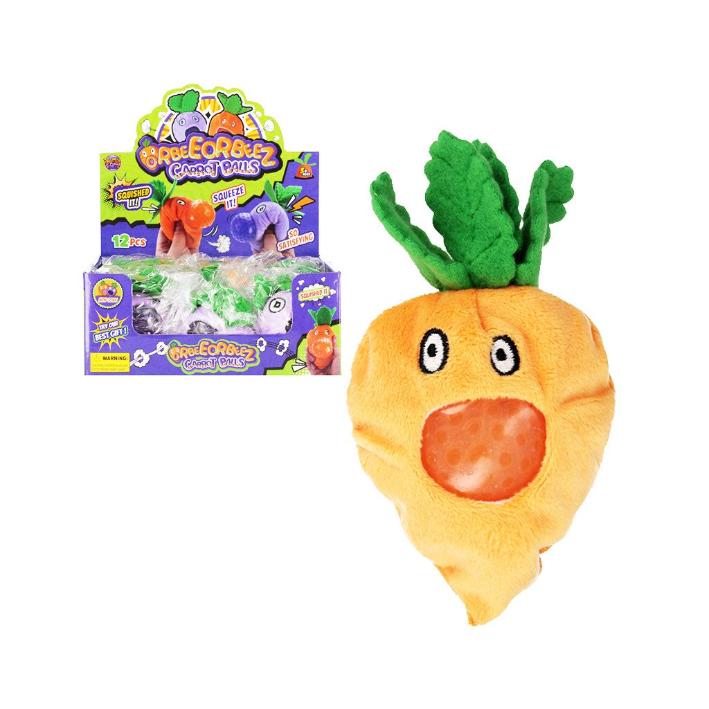 Stláčacia plyšová mrkva, má rozmer 12 cm. Na výber z viacerých variánt. Balené v boxe po 12 ks. Cena je za kus. Vhodné pre deti vo veku 3+ rokov.Dodatočné parametre