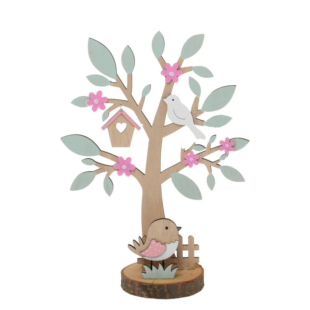 STROM S VTÁČIKMI DREVO 24x10x32CM NATUR ZELENÝ