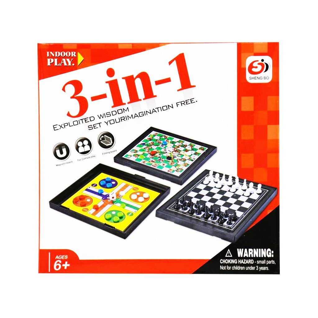 Súbor hier aj na cesty 3v1. Balenie obsahuje box s hracími plochami - Človeče, nehnevaj sa, Hadíky a rebríky, Šachovnica a magnetické kamienky a figúrky. Cena je za jedno balenie. Rozmer hracej plochy 14x14cm. Odporúčaný vek od 6+.Dodatočné parametre