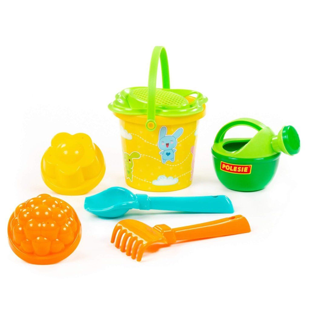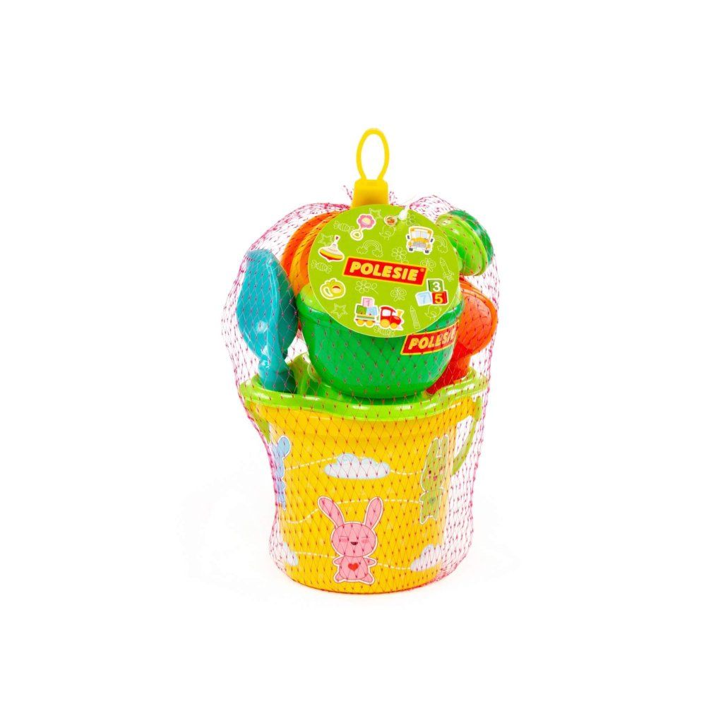 Súprava zo 7 častí, vedierko so sitkom s priemerom 12cm, krhlička, lopatka, hrabličky a 2 formičky. Vyrobená v 6 rôznych rozprávkových obrázkových verziách, k dispozícii podľa aktuálnej skladovej ponuky. Hračka je vhodné pre deti od 1 roku veku.Dodatočné parametre