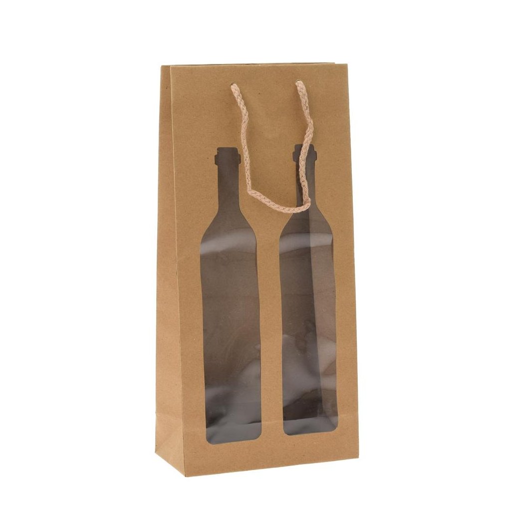 Cena za 1 ks: 1.25, TAŠKA PAPIER dvojfľaša KRAFT V37x17,5+8,5cmDodatočné parametre