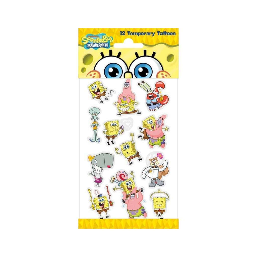 Veselé detské tetovačky SpongeBob potešia všetkých fanúšikov obľúbenej morskej hubky a jeho kamarátov. Jednoducho sa aplikujú pomocou vody, vydržia niekoľko dní a sú vhodné pre detskú pokožku. Skvelý doplnok na oslavy, párty alebo ako malá odmena pre deti.Dodatočné parametre