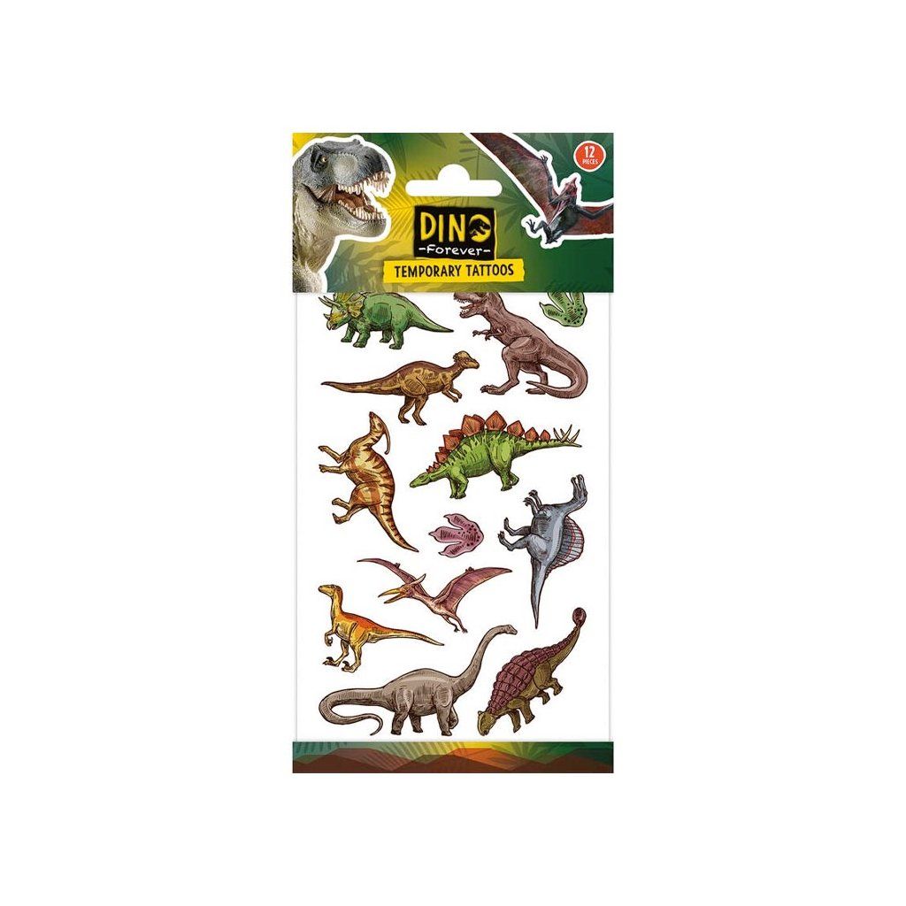 Tetovanie Dino, Balenie obsahuje: 1 plato o veľkosti 200 x 100 mm Odporúčaný vek od 3 rokov.