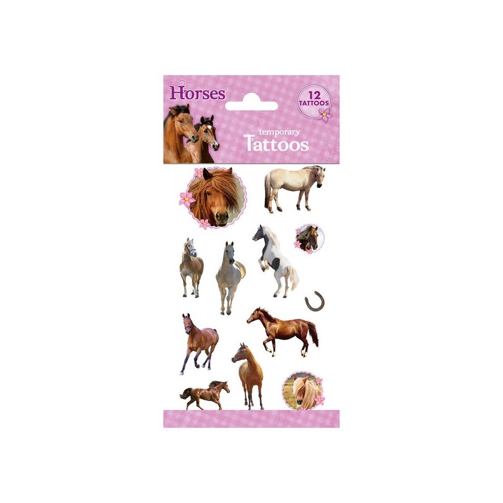 Tetovanie Kone, Balenie obsahuje: 1 plato o veľkosti 200 x 100 mm Odporúčaný vek od 3 rokov.