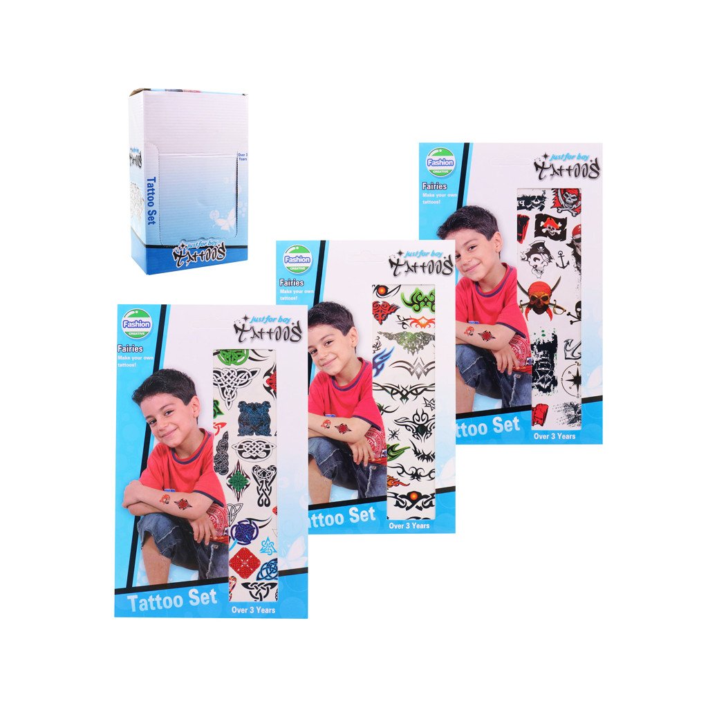 Tetovanie pre chlapcov, na výber z rôznych variánt. Rozmer produktu je 17x25x9cm. Balené v boxe po 36 ks. Cena je za 1 ks. Vhodné pre deti 3+.Dodatočné parametre