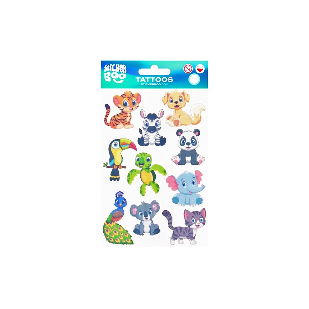 Tetovanie zvieratká, list s 10 tetovaniami. Rozmery produktu sú 18x10 cm. Vhodné pre deti 3+.