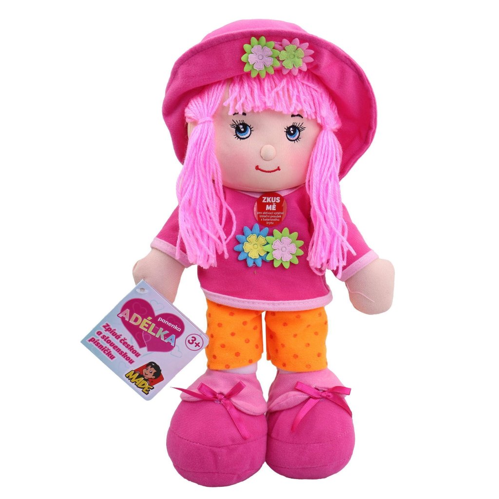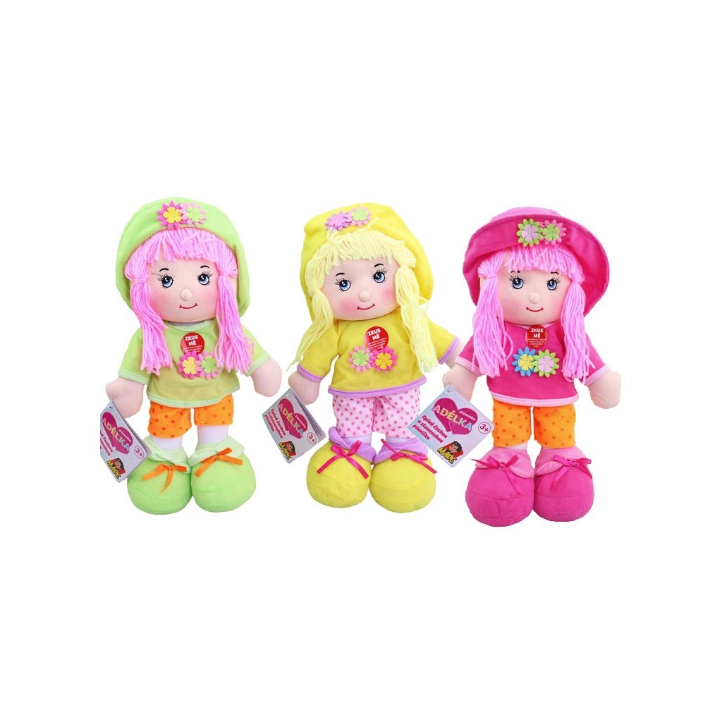 Bábika textilná, spieva Slovensky a Česky. Rozmer hračky je 38 cm. Materiál hračky je textil. Na sprevádzkovanie produktu sú potrebné 3 AG13 batérie. Batérie sú súčasťou balenia. Na výber z viacerých farieb. Cena za kus.Dodatočné parametre