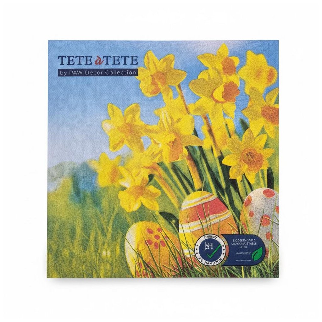 Cena za 1 ks: 1.75, TL125000 SERVÍTKY 33x33 cm/20ks/3vrst. EGGS AMONG DAFFODILS