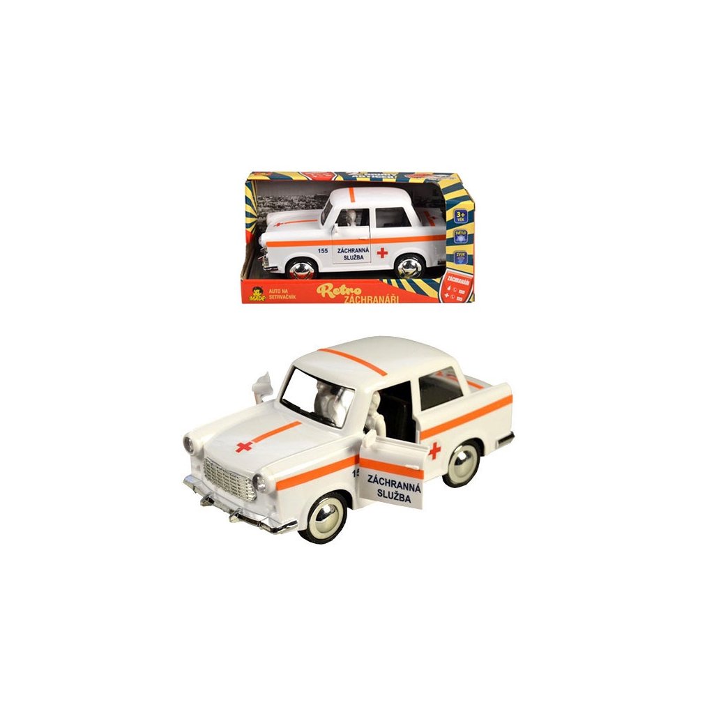Trabant Záchranársky je 18 cm veľký s pohonom na zotrvačník s otváracími dverami.Po vytiahnutí poistky a stisnutí sa zasvietia predné svetlá so zvukom štartu a chodu motora.Dodatočné parametre