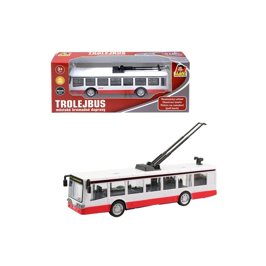 Kovový trolejbus s realistickým vzhľadom v českom dizajne. Skvelý darček pre vąetkých priaznivcov mestských dopravných prostriedkov. Červenobíločernou farebnú kombináciu môľete vidieť na prostriedkoch mestskej hromadnej dopravy v niektorých naąich městech.Trolejbus má výklopné troleje, otváracie dvere. Pohon je na spätné natiahnutie. Rozmery trolejbusu sú cca 16 x 3 x 3 cm. Materiál kombinácia kovu a plastu. Vhodné pre deti od 3 rokovDodatočné parametre