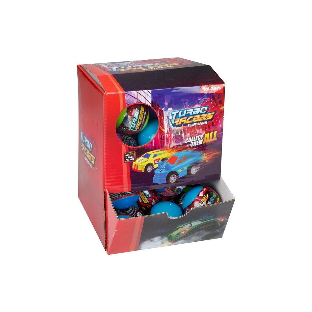 Turbo Racers vajíčko ukrýva autíčko s pull-back mechanizmom. Každé otvorenie prináša nové prekvapenie.