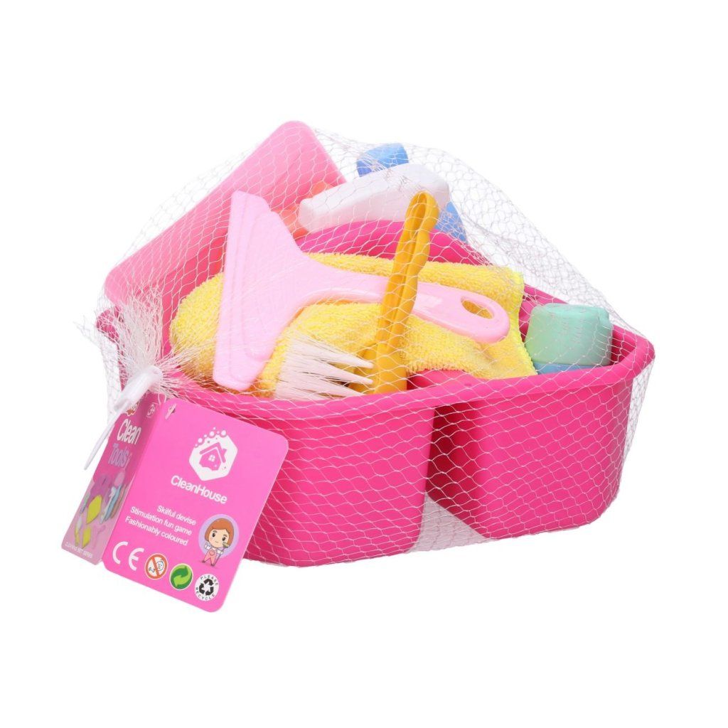 Zábavný detský upratovací set obsahuje 9 kusov príslušenstva ako vaničku nosič, metličku a lopatku, stierku, handričku, hubku a fľaštičky čistiacich prostriedkov, všetko je uložené v praktickej vaničke s priehradkami pre jednoduché prenášanie a organizáciu, ľahké a bezpečné plastové prevedenie so zaoblenými hranami je vhodné pre detské ruky, hra podporuje rozvoj fantázie, jemnej motoriky a učí deti základom poriadku a samostatnosti pri napodobňovaní domácich prác, vhodné na každodenné hranie doma.Dodatočné parametre