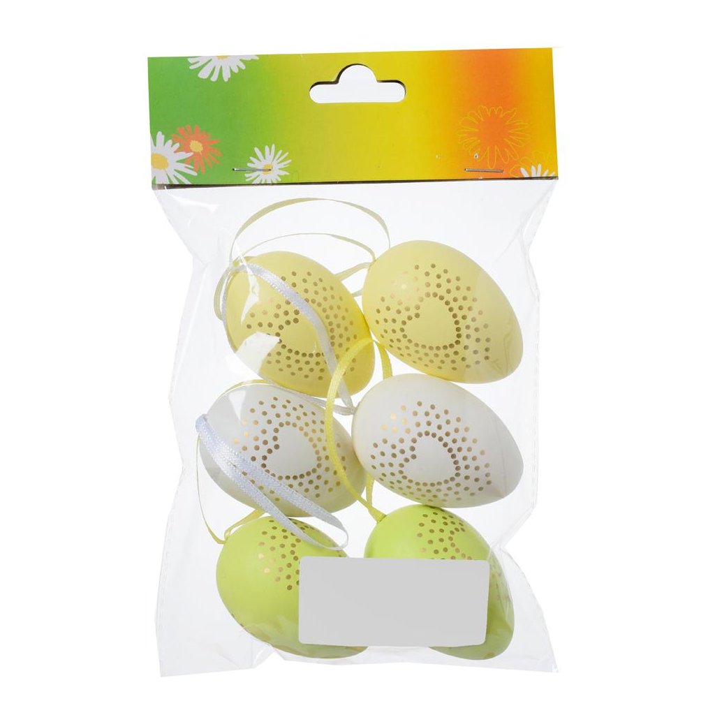 Cena za 1 ks: 2.26, VAJÍČKA BIE/ŽL/ZEL VZOR SRDCE PLAST S/6 4*4*6CMDodatočné parametre