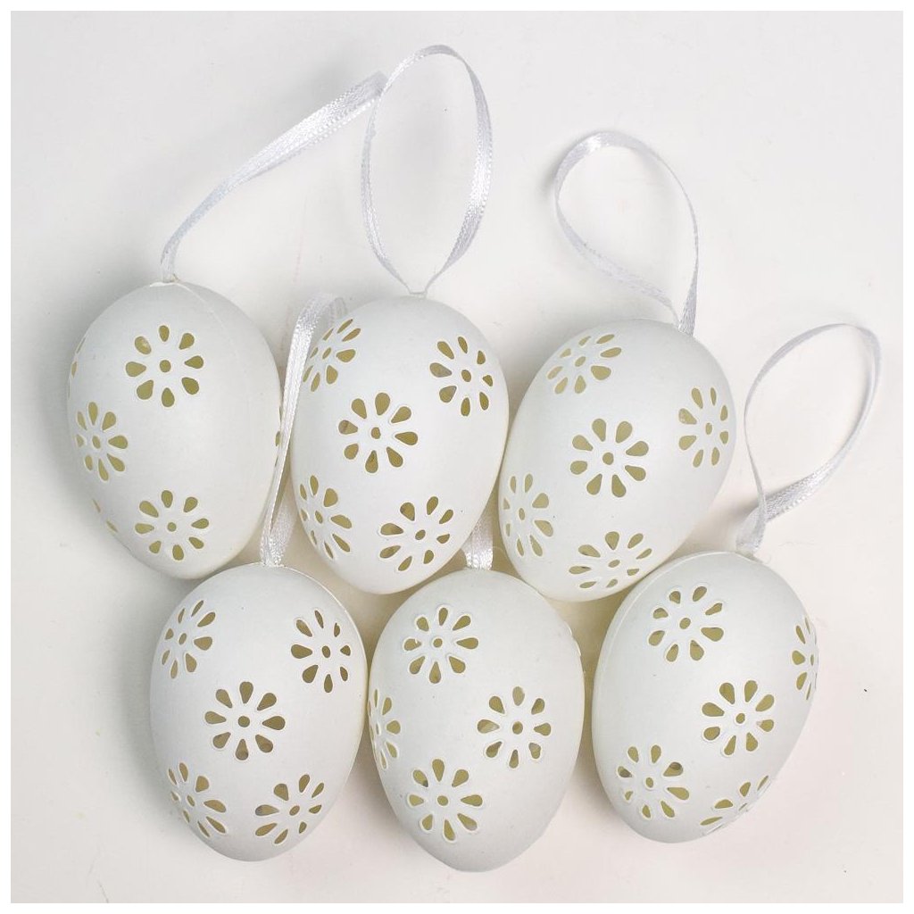 VAJÍČKA VZOR KVET BIELE S/6 CM