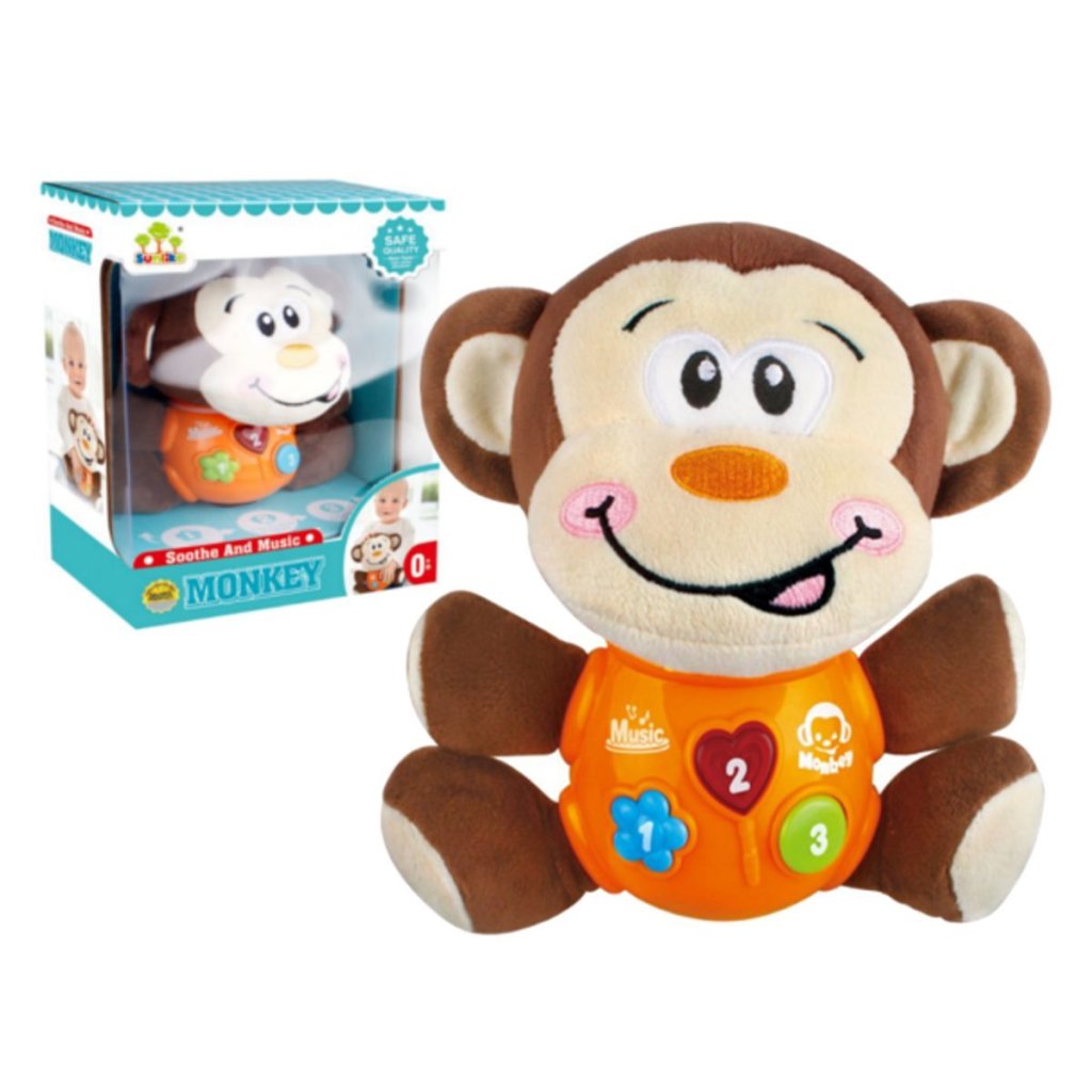Veselé zvieratko so svetlom a zvukom, na brušku sú tlačidlá s jednotlivými funkciami. Pri stlačení tlačidla s číslom 1 budeš počuť čvirikanie vtáčikov, po stlačení 2 zakaždým stlačení inú melódiu a pri stlačení 3 veselé zvuky. To všetko je sprevádzané blikajúcim svetielkom. Hračka vyžaduje 2ks 1,5V batérií typu AAA, ktoré nie sú súčasťou balenia. Má rozmery 16 x 21 x 12 cm. Možnosť výberu z dvoch druhov. Cena je za kus. Vhodné pre deti vo veku 3+ rokov.Dodatočné parametre