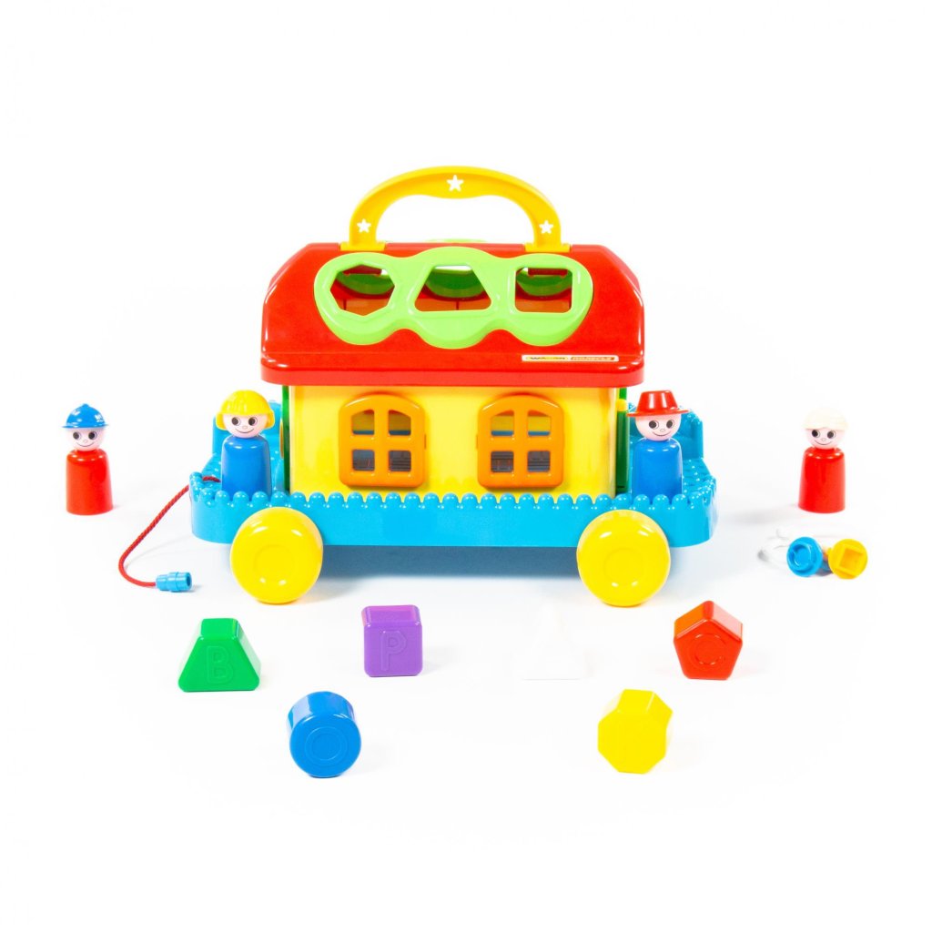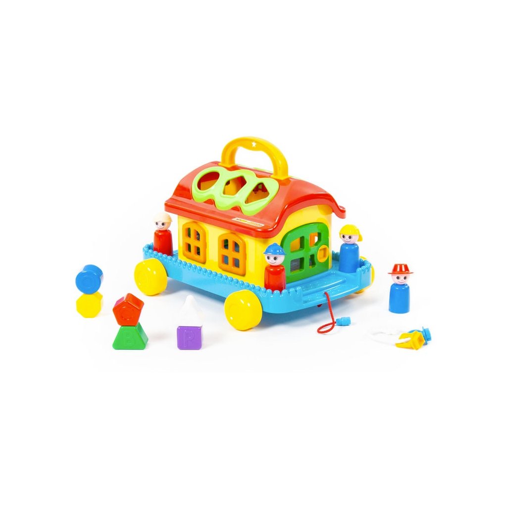 Veselý domček na kolieskach je 32 x 26 cm veľký s výškou 20 cm. Pre dieťa má viacero benefitov: môže ho na kolieskach ťahať, nosiť za praktickú rukoväť, učí sa poznávať tvary a farby a dokáže aj odomknúť dvierka. Pre hru poslúžia 4 postavičky. Hračka je vhodná pre deti od 1 roku.Dodatočné parametre
