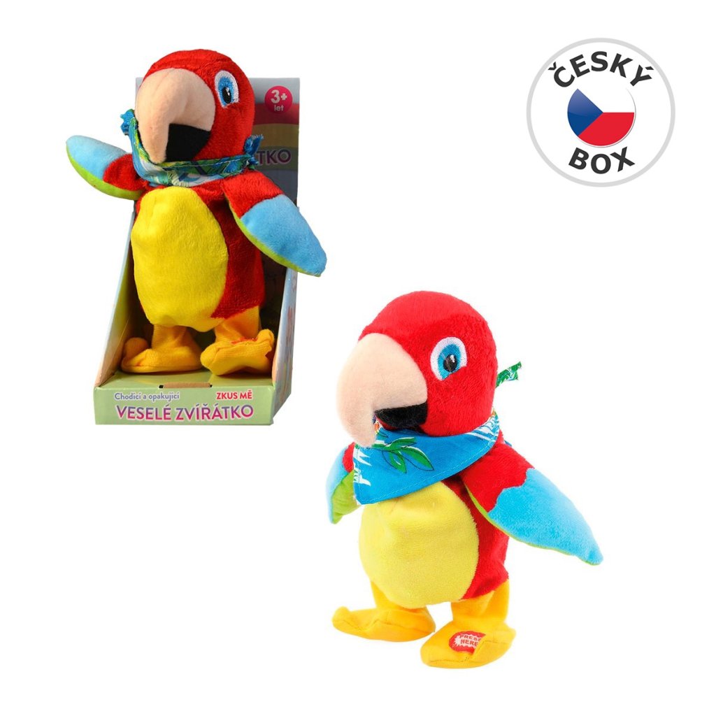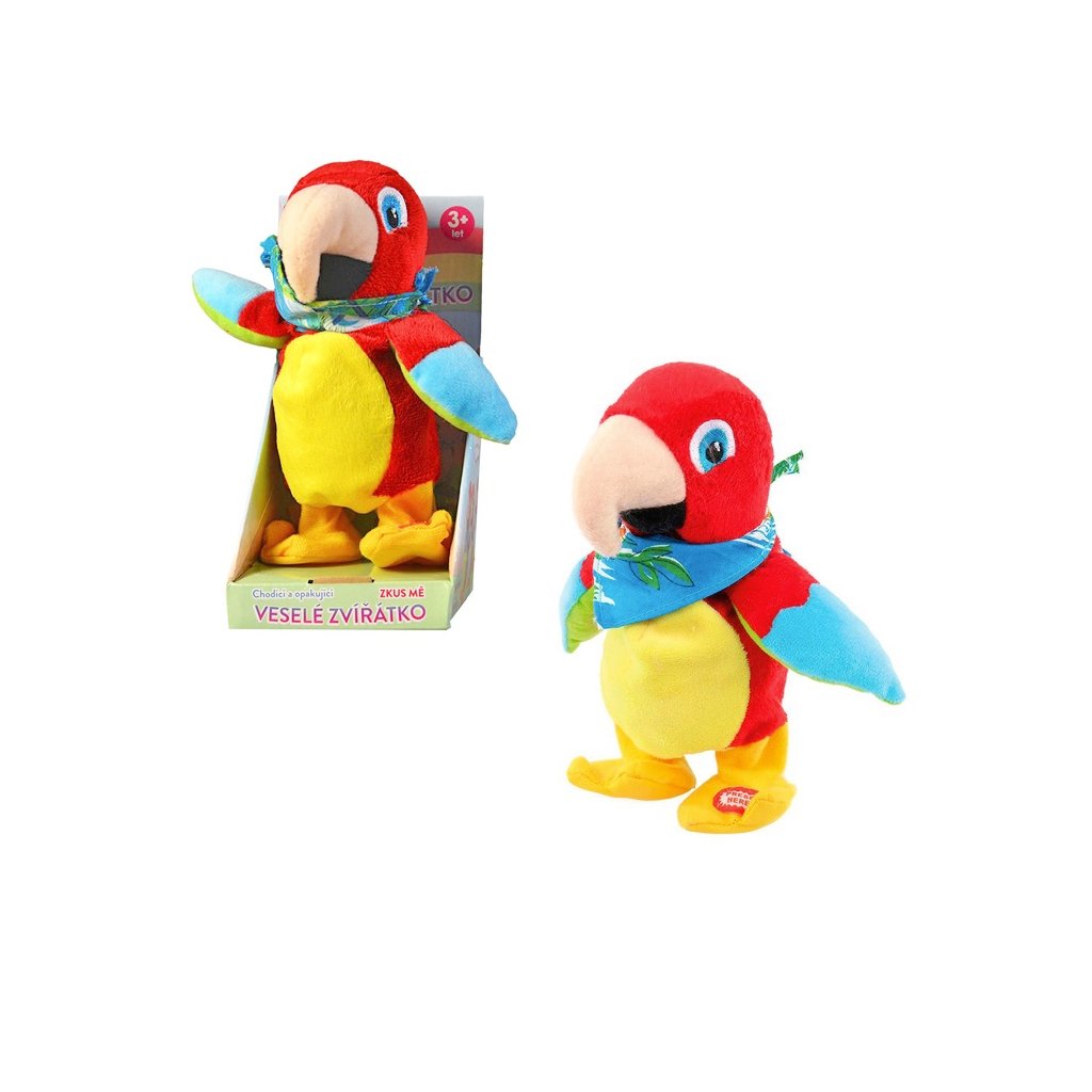 Opakujúci a chodiaci papagáj. Veselé zvieratko opakuje, čo počuje a chodí. Napájanie 3 x 1,5V AA batérie. Batéria nie je súčasťou balenia.Dodatočné parametre