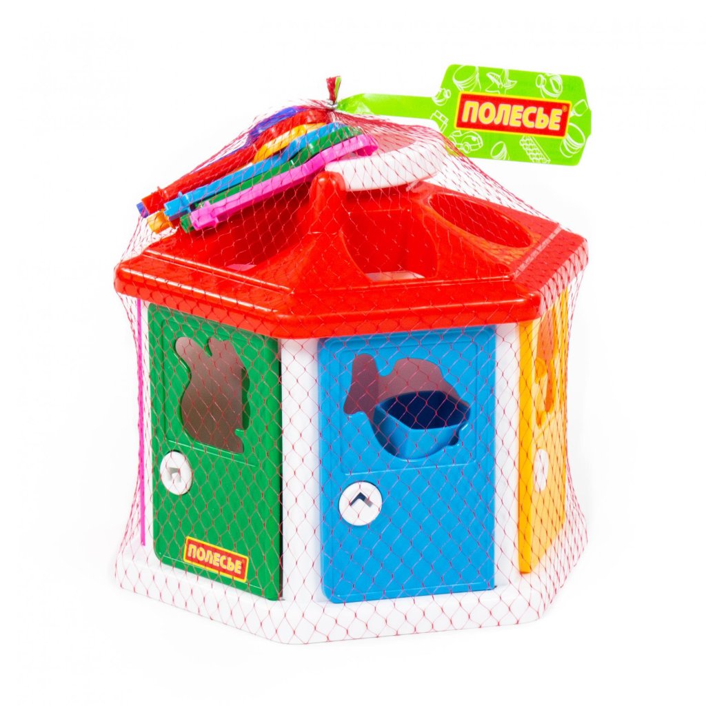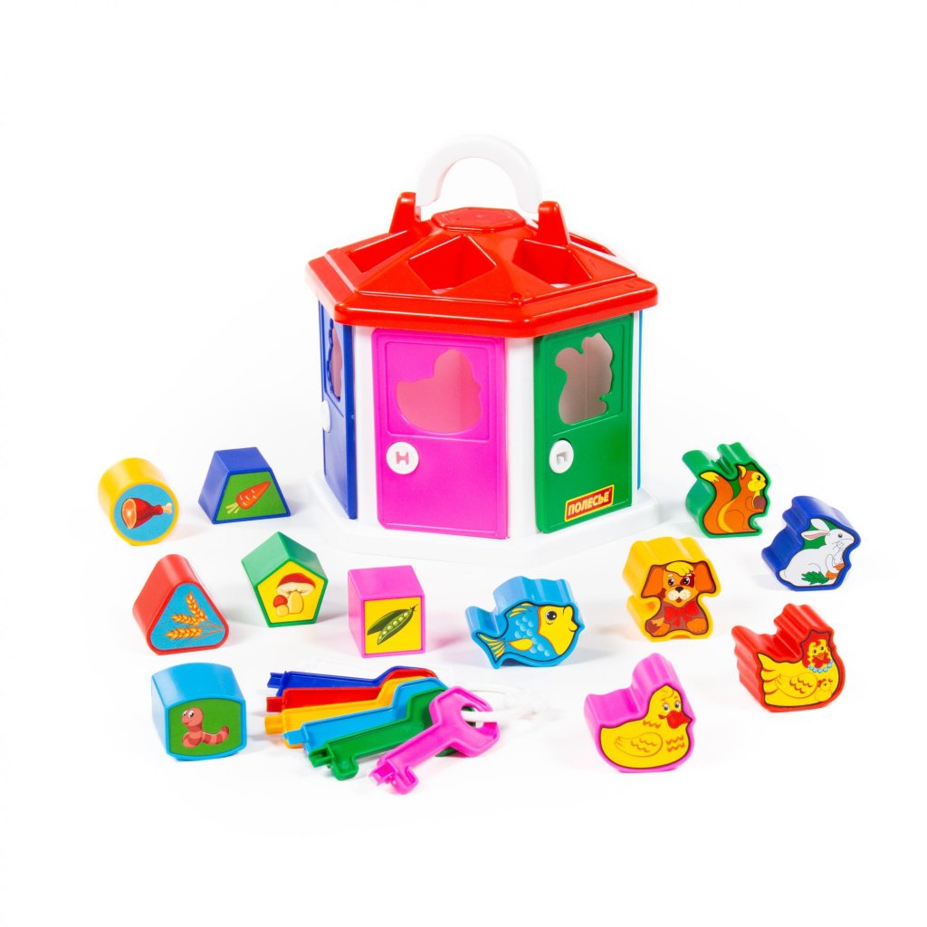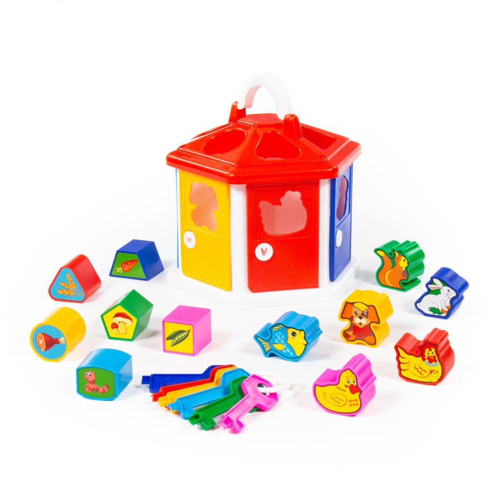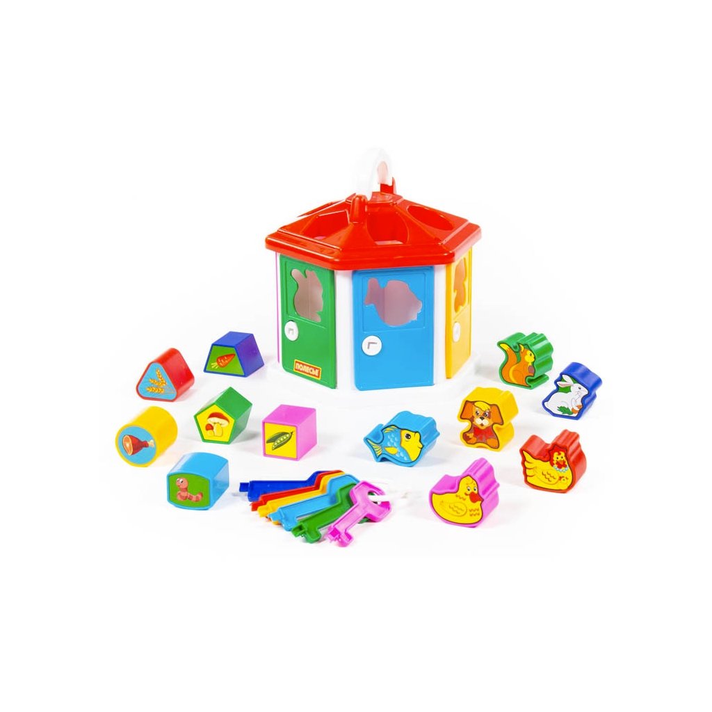 Didaktická hračka - vkladačka, domček z plastu, v balení kľúče na dvierka a 12ks vkladačiek. Podporuje rozvoj zručností, rozličovania tvarov a farieb. Vyrobené v licencii CAVALLINO.Dodatočné parametre