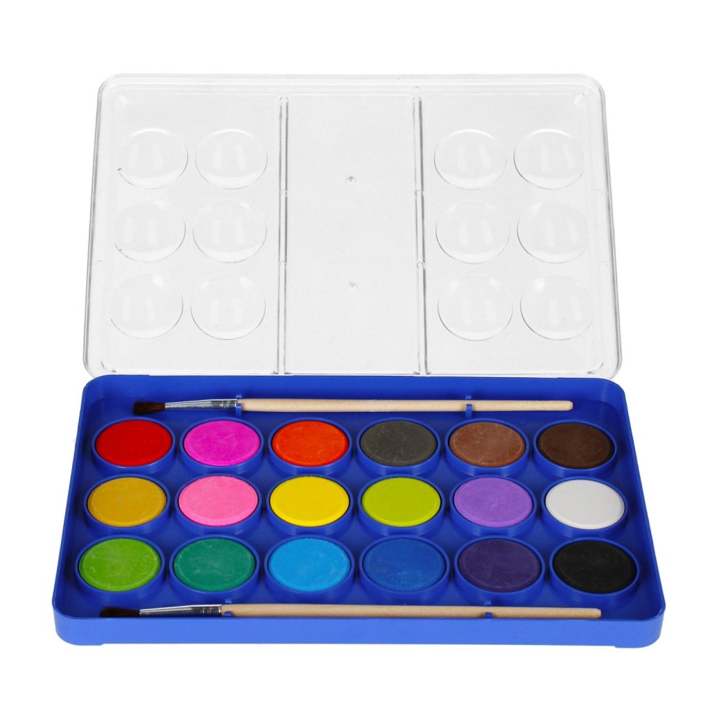 Vodové farby so štetcom v sade, má rozmery 15x24x2 cm. Súčasťou balenia je 12 farieb a 2 štetce. Cena je za 1 sadu. Vhodné pre deti vo veku 3+ rokov.Dodatočné parametre