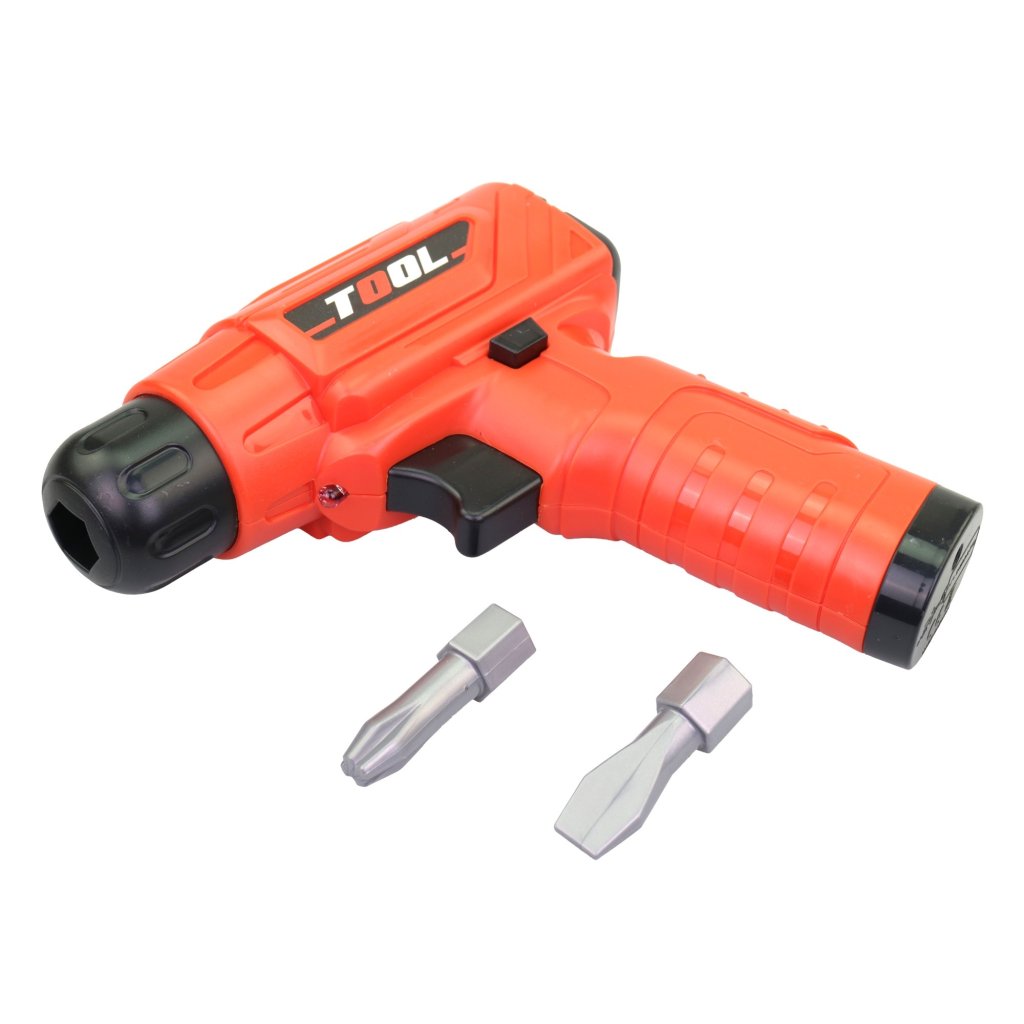 Vŕtačka elektrická, vymeniteľná Vŕtačka 15 cm. Ideálna hračka pre všetkých malých kutilov. Verná imitácia skutočného náradia. Deti rady napodobňujú dospelých pri rôznych manuálnych činnostiach. Vložte do výrobku 2 batérie AA a môžete začať pracovať. Hračka je určená pre deti 3+. Veľkosť hračky je 15 cm. Materiál hračky je plast. Obal hračky je krabica. Výrobok je určený pre chlapcov. Na prevádzku výrobku sú potrebné 2 batérie AA. Batérie nie sú súčasťou balenia.Dodatočné parametre