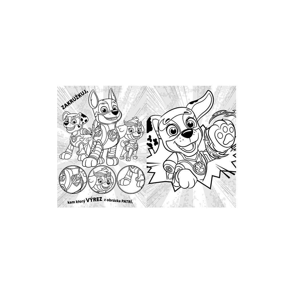 Vyfarbuj si! Labková patrola Silné labky, obsahujú 16 čiernobielych strán s obrázkami na vyfarbenie a 2 listy samolepiek na dolepenie. Veľkosť zošita je 265 X 195 X 3 mm. Cena je za kus. Vhodné pre det vo veku 3+ rokov.Dodatočné parametre