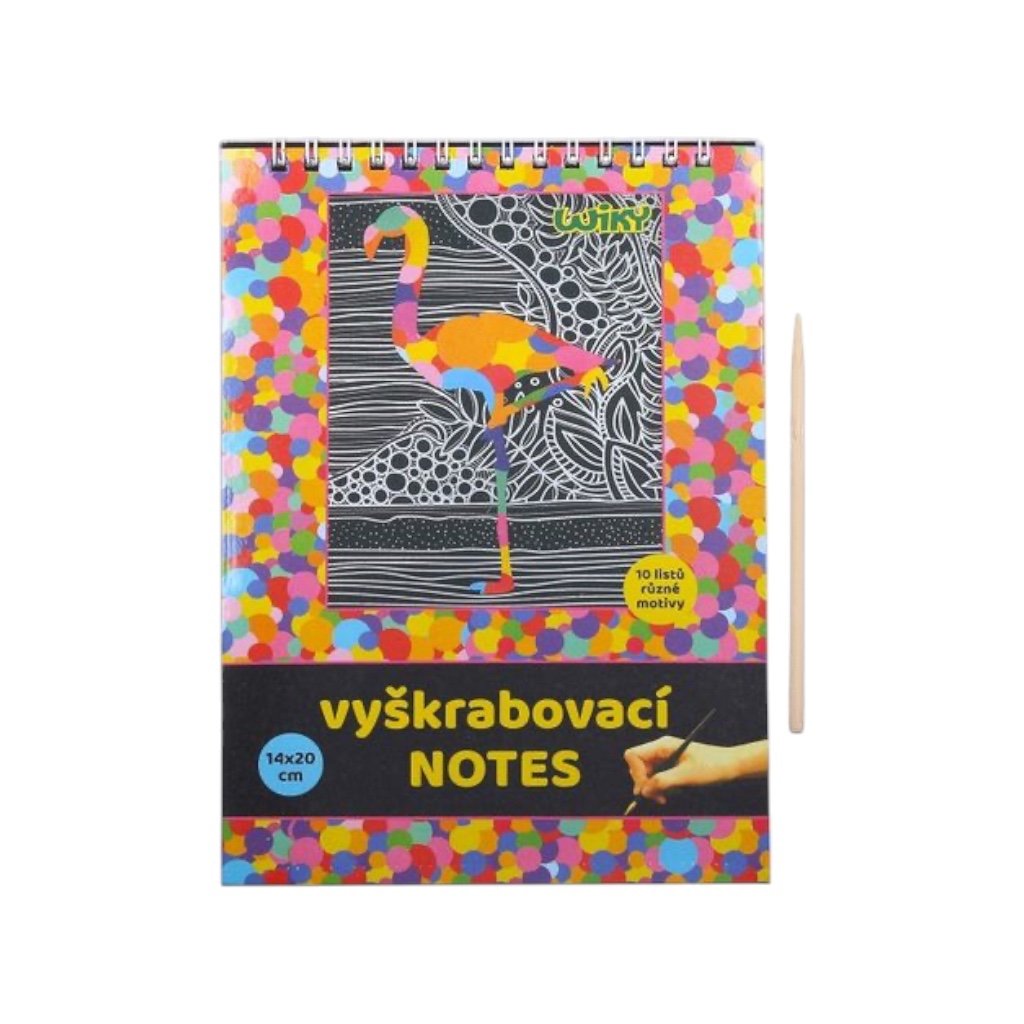 Vyškrabovací notes s perom. Kreatívne sa odviažte s vyškrabovacím notesom, ktorý má rozmery 14 x 20 cm. Na jednotlivých listoch, môžete pomocou vyškrabovacieho pera vytvárať rôzne pestrofarebné obrázky.Dodatočné parametre