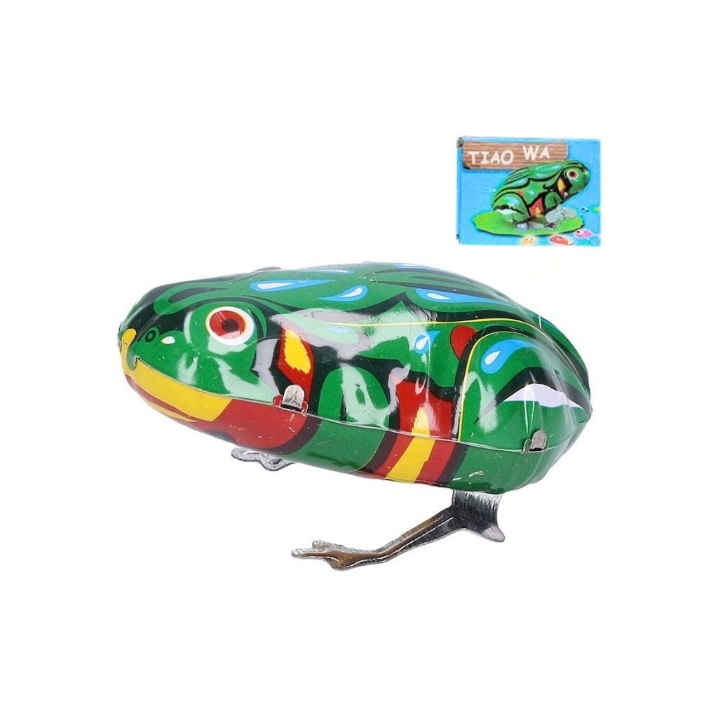 Klasická plechová žabka na naťahovanie prinesie deťom zábavu v retro štýle. Po natiahnutí kľúčikom sa vďaka pérovému strojčeku pohybuje a skáče, čím poteší malých aj veľkých milovníkov tradičných hračiek. Kovové spracovanie zaručuje pevnosť a dlhú životnosť. Vhodná na hranie aj ako milý darček.Dodatočné parametre