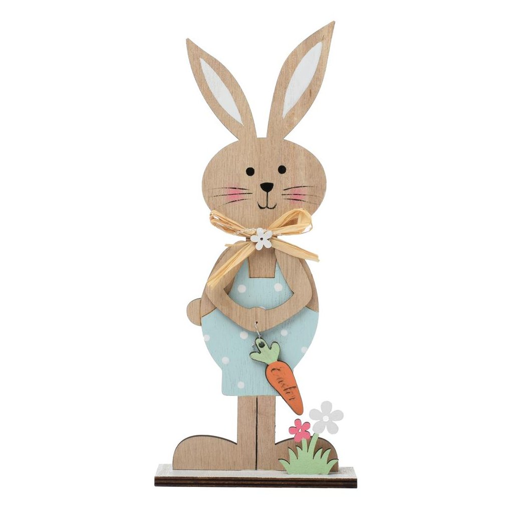 Cena za 1 ks: 3.08, ZAJAC S MRKVOU DREVO 11x4,5x25,5CM MODRÝ